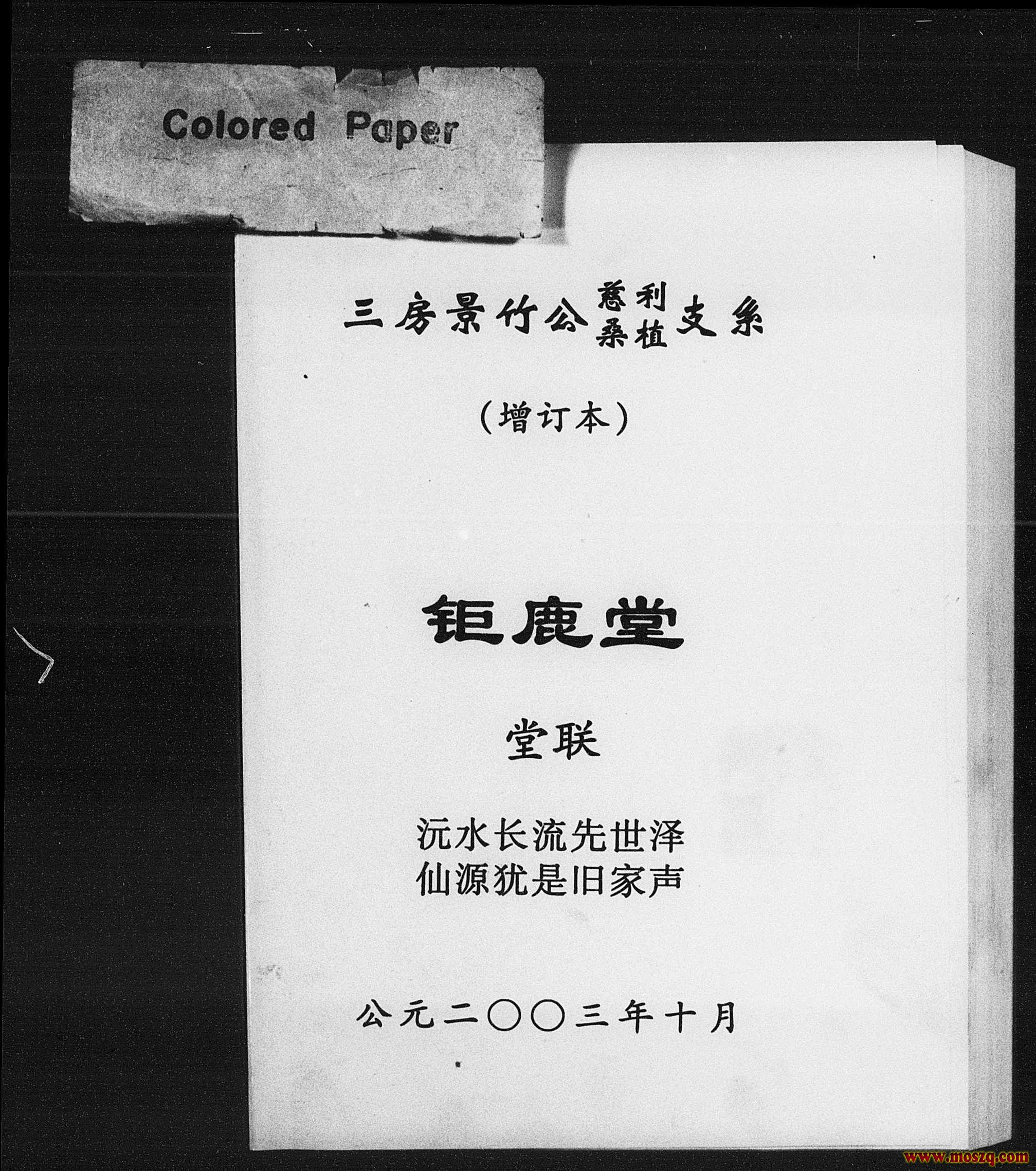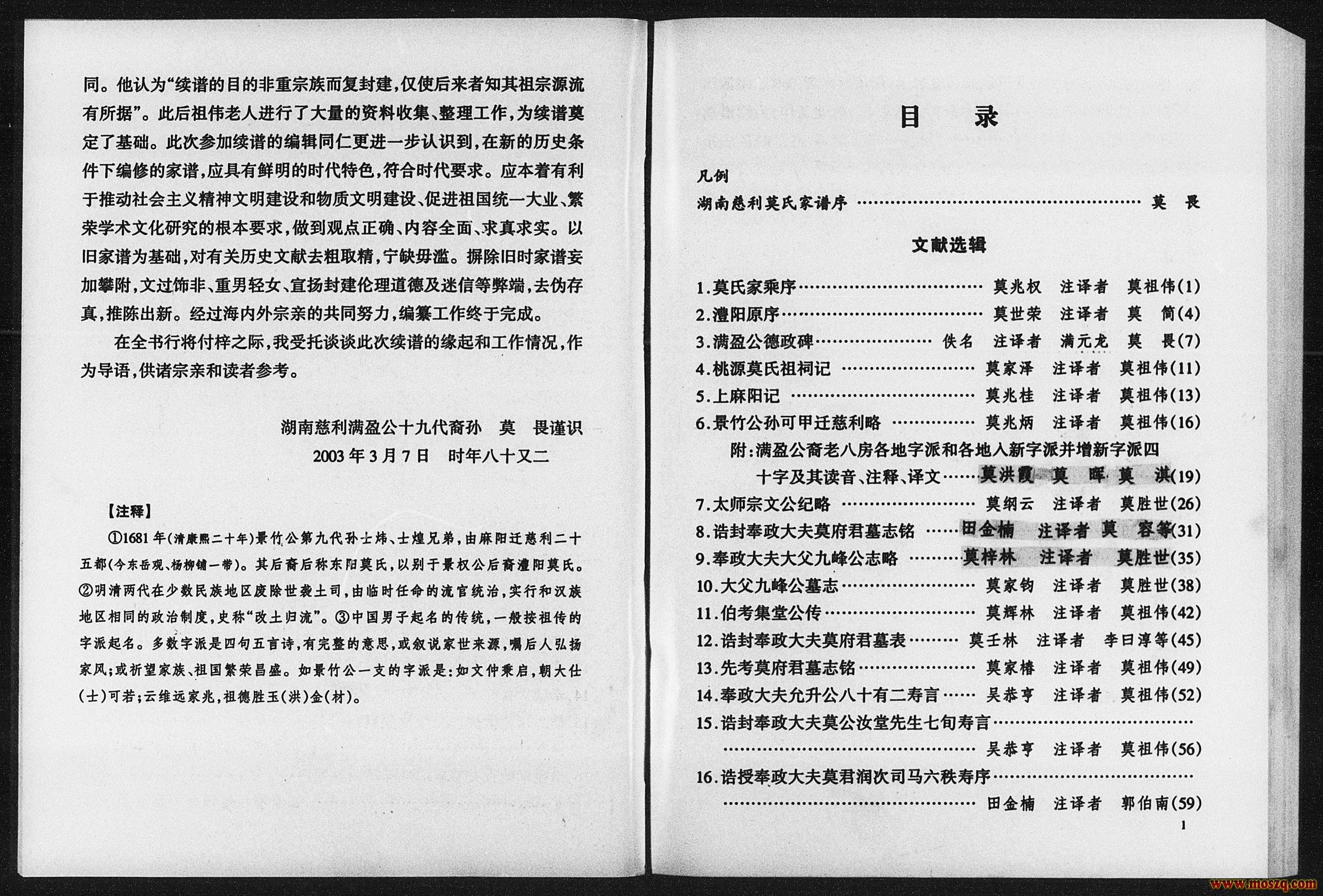 美国犹他州家谱学会所收藏中国莫氏家谱: 湖南慈利 莫氏家乘 2003 ...